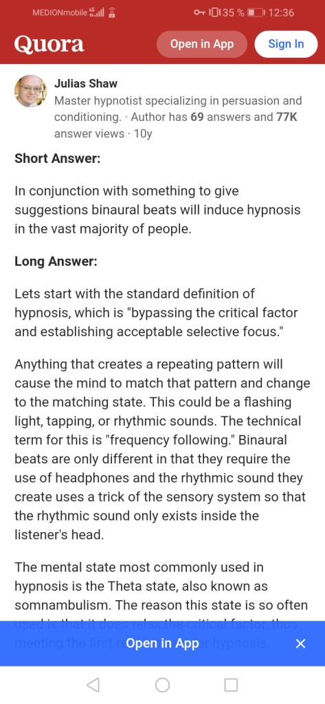 Since the middle of 2018 I had been seeing a psychic woman on a regular basis who did a special esoteric therapy called “theta healing”. It is based on a slight form of hypnosis that uses the theta state of the brain. The brain is in theta state shortly before you fall asleep or after you just woke up. I guess after four years my brain was trained for that kind of treatment and I have easy access to being hypnotised.